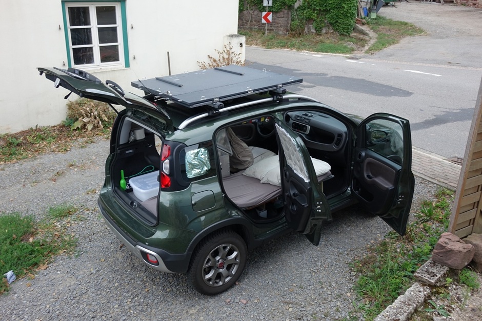 Mein Rolling Home, mein agiler Panda 4x4, wird von einer befreundeten Werkstatt so weit wie möglich fit gemacht für den Plan, auch viel abseits der Ringstrasse auf Schotterstrecken unterwegs zu sein. Der kleine Wagen hat keine allzu große Bodenfreiheit und so schützt ein zusätzlicher Unterbodenschutz. Auch das Dachgepäcktträger-System wird soweit aufgerüstet, dass der Reservereifen oben drauf passt – ich brauche Stauraum für tagelanges Unterwegssein und am tiefsten Punkt, dem Radkasten, wird mein "Kühlschrank" sein. Auch die Stromversorgung für Handy, fliegende Kamera und Laptop muss sichergestellt werden und der Kocher für warmes Essen und den heißen Kaffee morgens darf nicht fehlen.