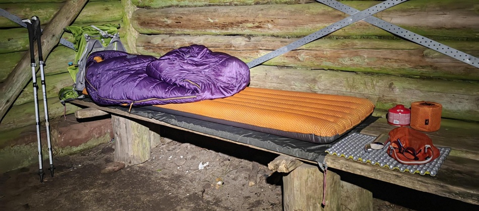 Als Übernachtungsorte habe ich mir einfache Schutzhütten am Wegesrand ausgesucht. Ich hoffe, dass in allen die Sitzbänke ausreichend breit sind, dass ich mich mit meinem Schlafsack drauflegen kann. Auf dem kalten Boden möchte ich trotz dicker Isoliermatte unter dem Schlafsack nicht liegen. Aus diesem Grund habe ich auch meinen Kocher dabei, Gaskartusche und Essen für mehrere Tage.