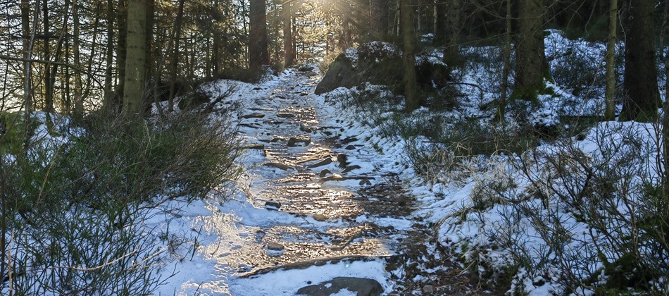 Am schlimmsten ist allerdings das Eis, dass sich durch den Regen auf den Wegen gebildet hatte. Der Abstieg zum Mummelsee gestaltet sich darum auch halsbrecherisch.