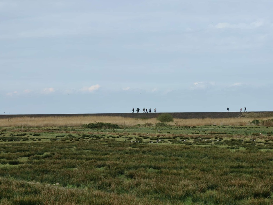 Alle Pausen unter freiem Himmel werden hier auch immer wieder zu einem Verteilungskampf. Denn sobald man sich hinsetzt, wird man von Möwen belagert, die nur darauf warten, in einem unaufmerksamen Moment ihren Anteil vom Pausenschmaus zu ergattern. Lästig und lustig gleichermaßen. Und noch sind keine Küstenseeschwalben da, die erheblich aggressiver ihr Brutrevier verteidigen.